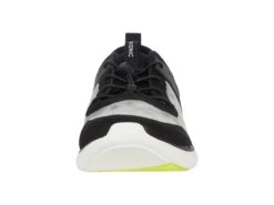 - Sock-like collar and padded tongue with pull tabs for easy on and off.