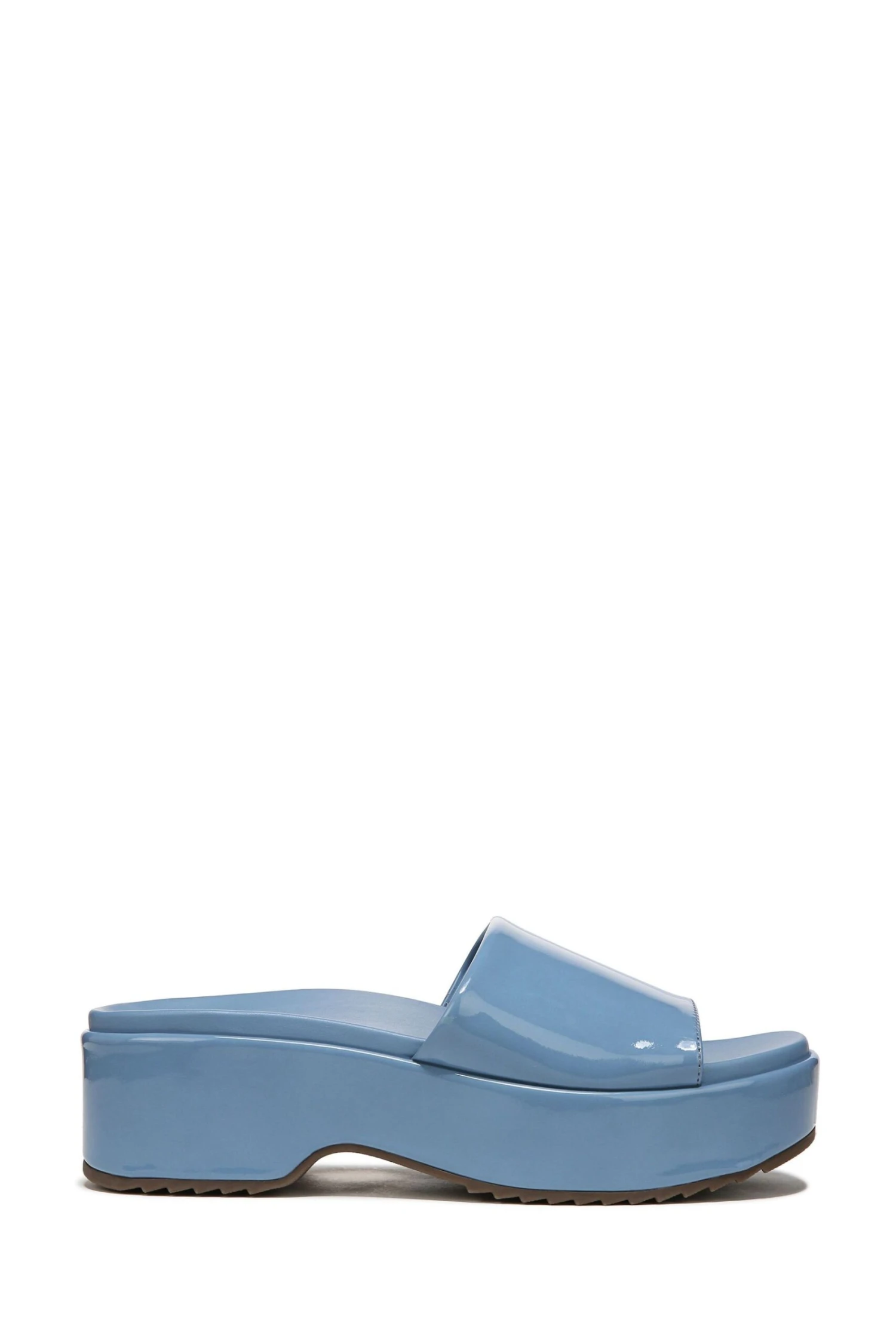 Nodding to the 90s, this fashionable single-band slide really shines in patent leather. A cutout arch adds flex with every step.