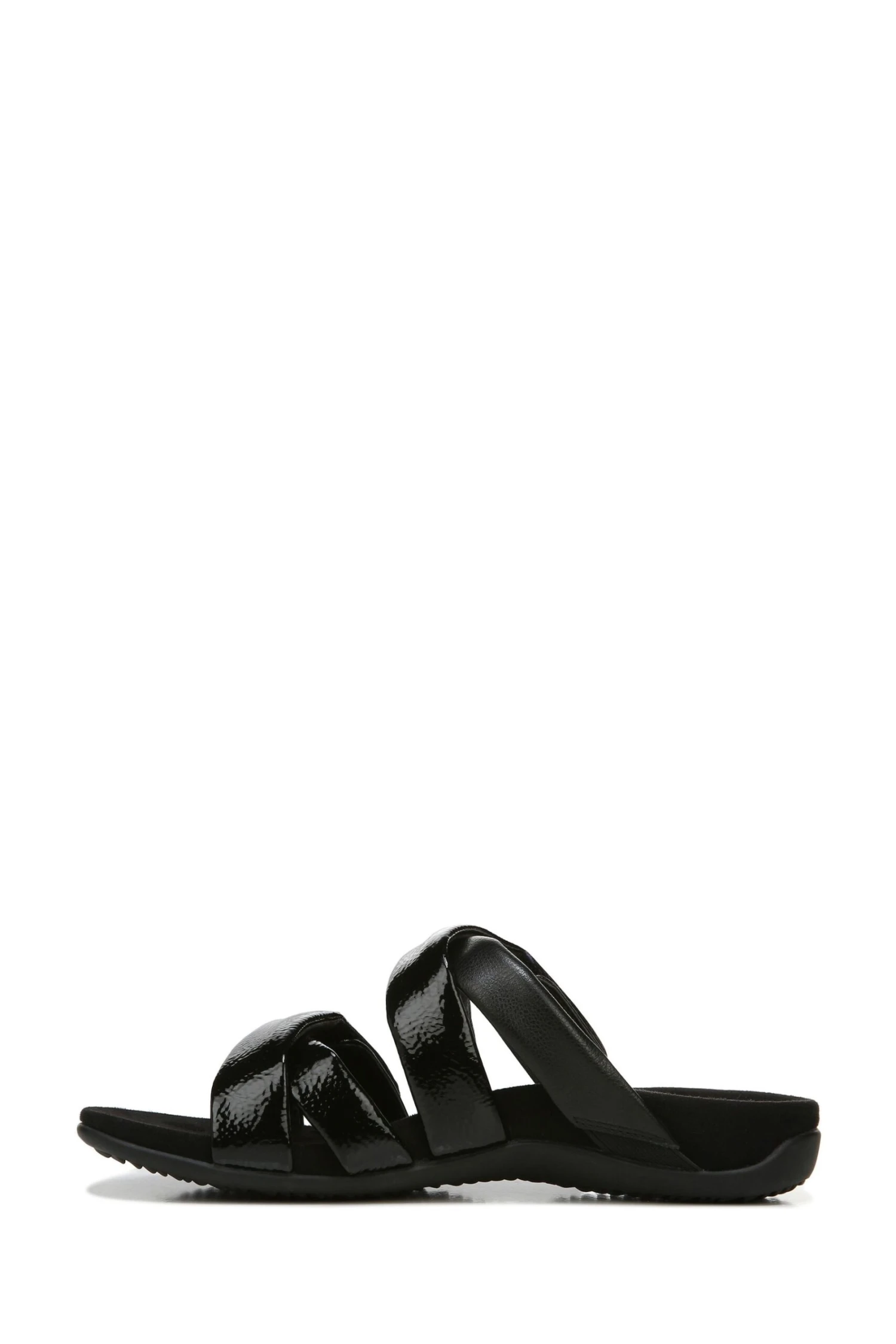 Strap it up! These casually chic, crinkle patent leather slides offer optimal fit with multiple hook-and-loop adjustment points.