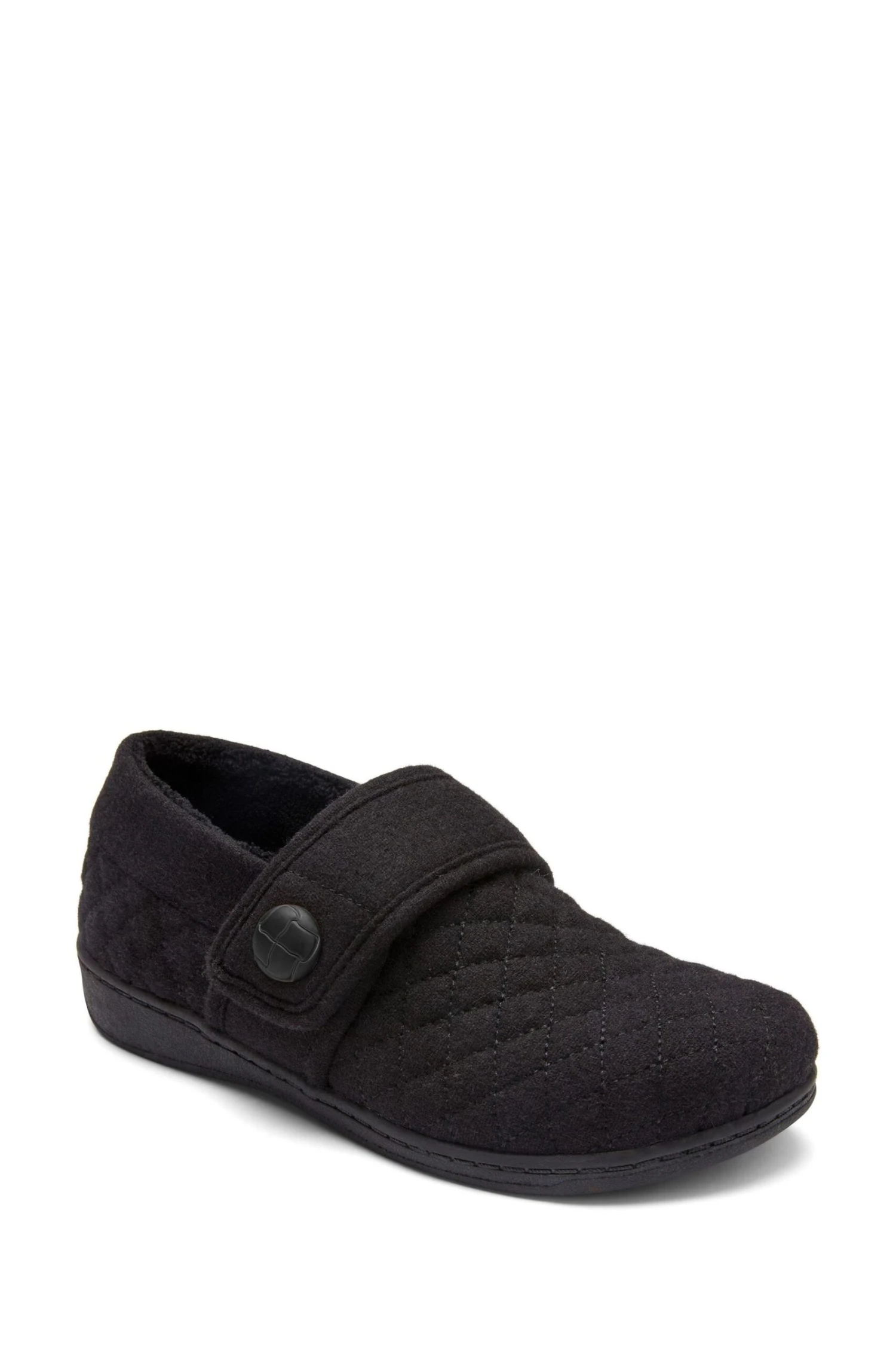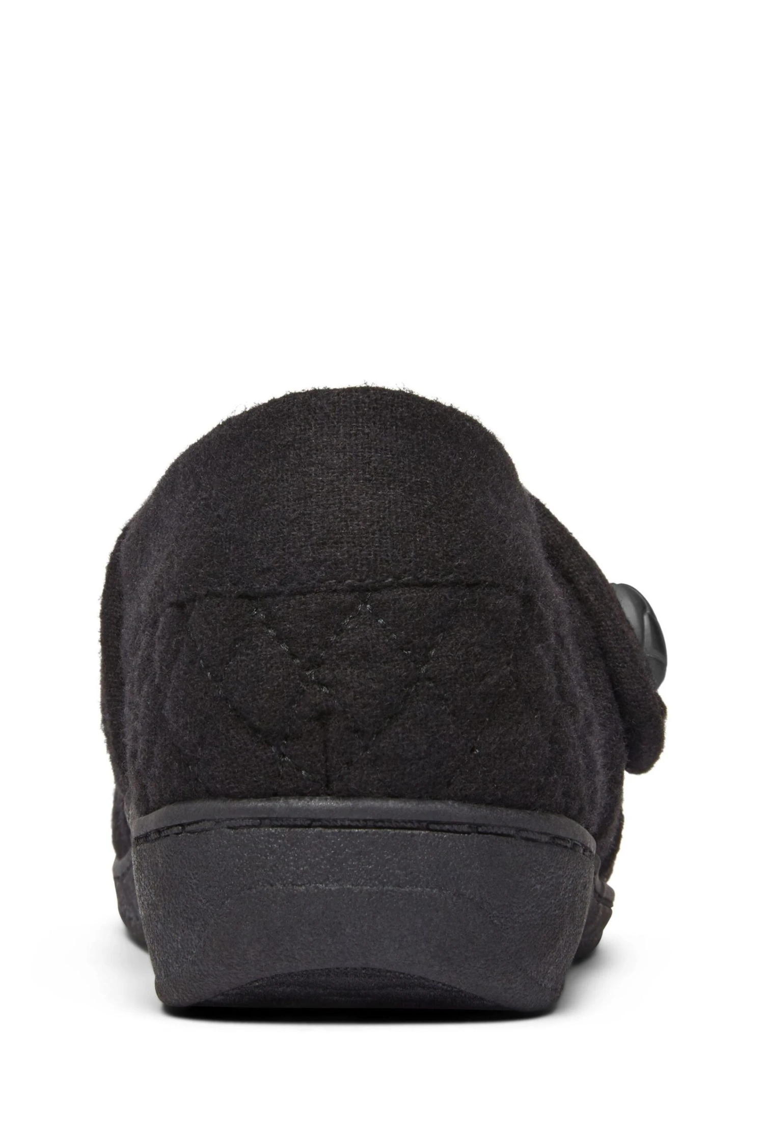 A button adjustable slide style, Jackie has a classic quilted upper and warm faux-fur lining.