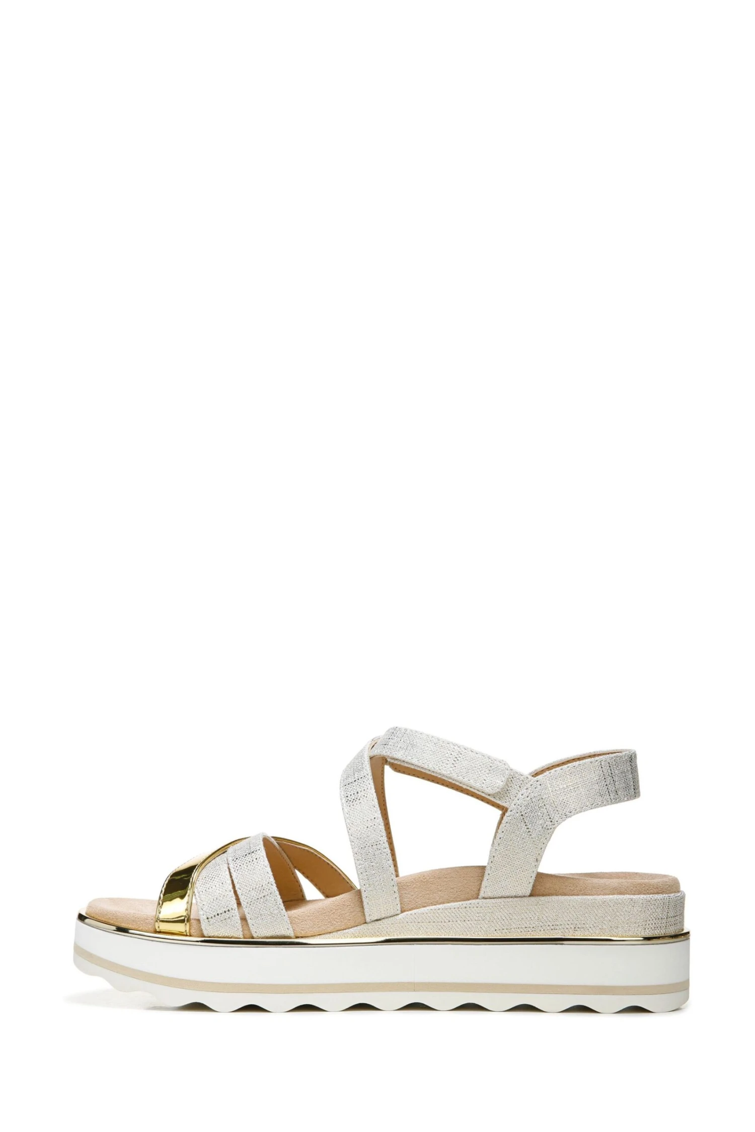 Metallic linen and mirror—a match made in shoe heaven. These chic flatform sandals offer neutral versatility with a pop of glam.