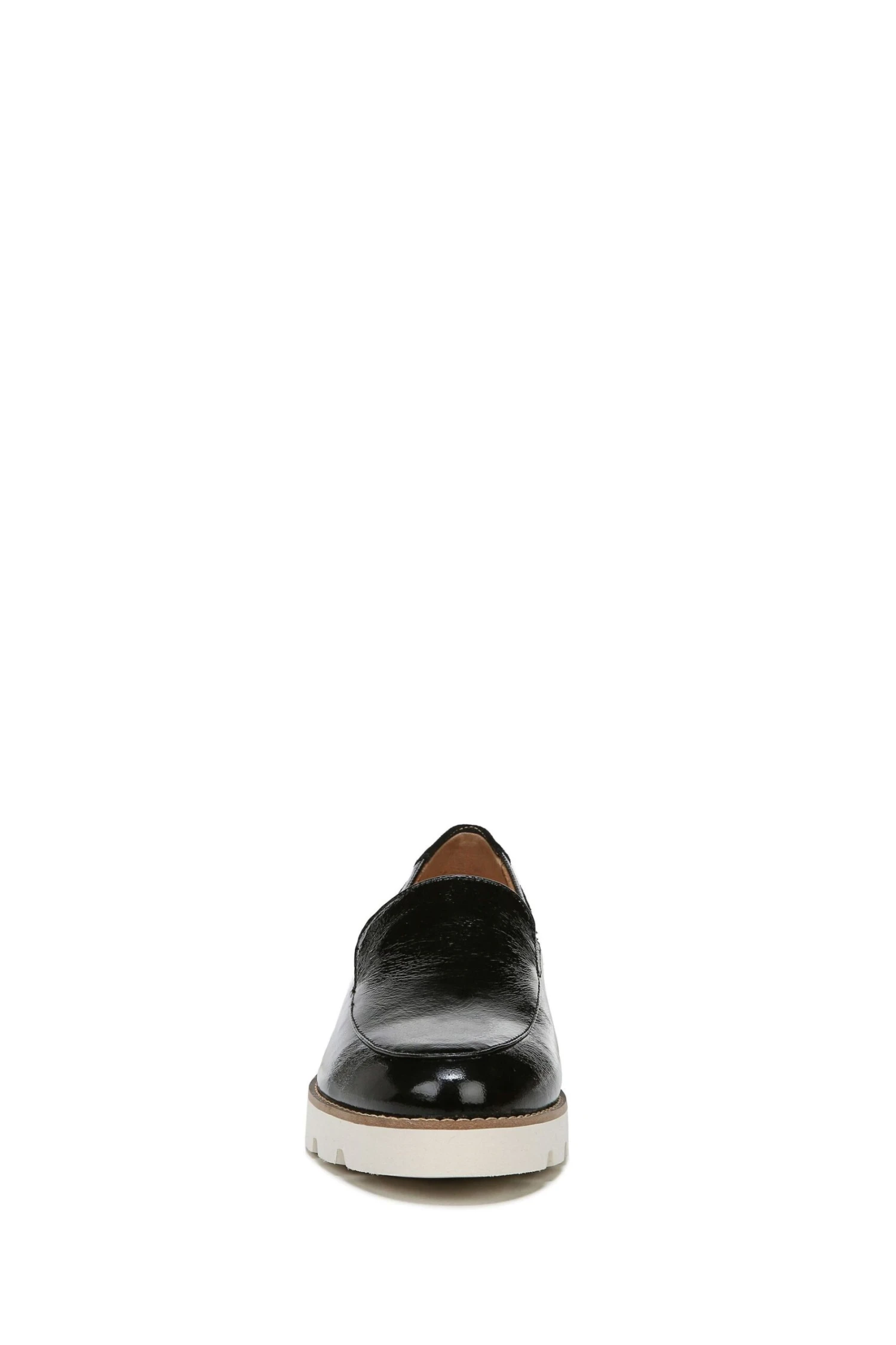 A classic loafer with modern shine: Crinkle patent leather, a metallic silver binding and the perfect boost of lug sole height.