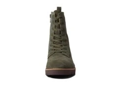 - The VIONIC® Lani combat-style boot features a patent leather upper, pull-on with lace-up and side zip closure, rounded-toe silhouette, and thick rubbed outsole.