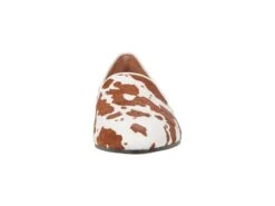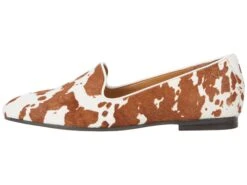 - Slip-on flats feature a printed leather upper or smooth suede upper.