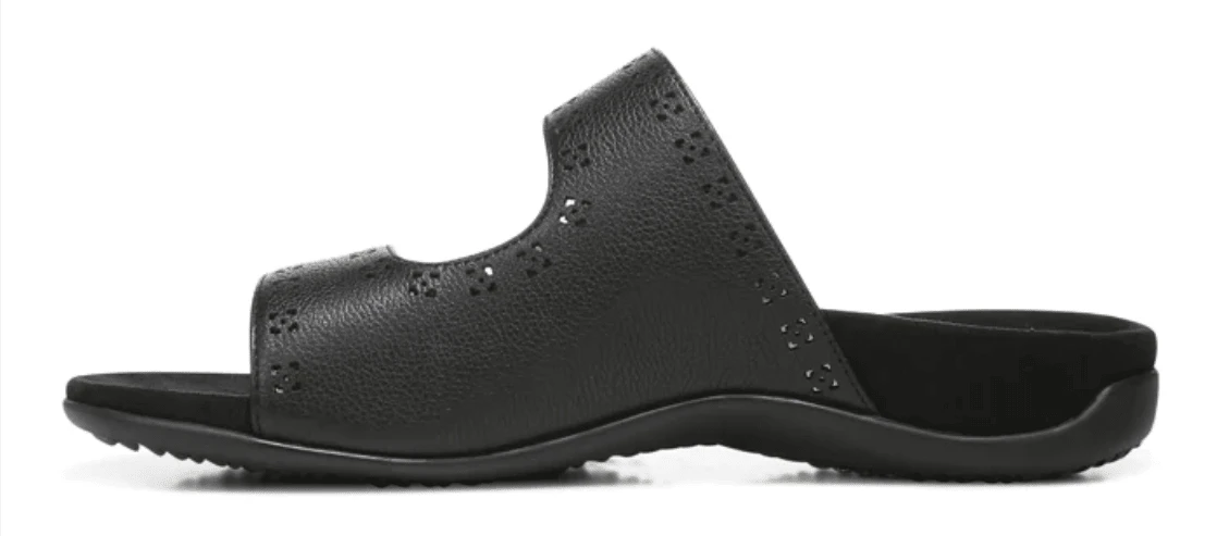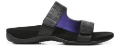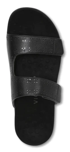 Vionic Women’s Nakia Adjustable Slide Sandals Black Leather Metallic